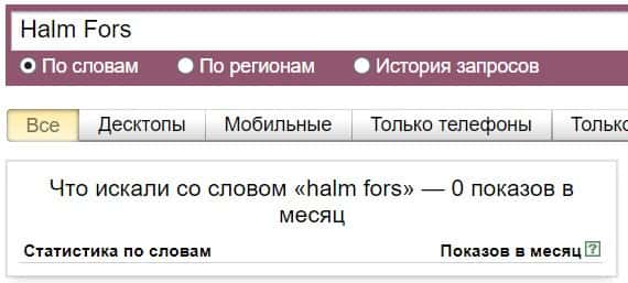 То же название "Halm Fors", но написанное с пробелом, люди не пытались найти в системе Яндекс ни разу.