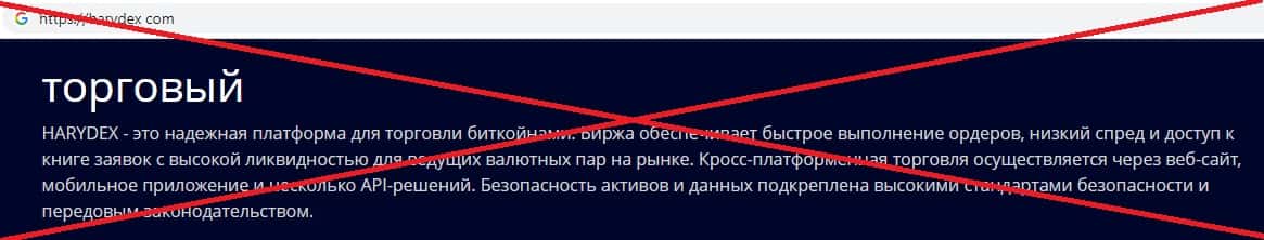 - Шулера Harydex врут об отсутствии рисков потери денежных средств в торговли криптовалютой на их дырявом сайте