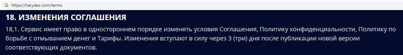 - Пользовательское соглашение интернет-лохотрона Harydex