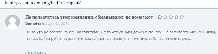 - Отзыв об обманщиках в финансовой конторе HartFortCapital