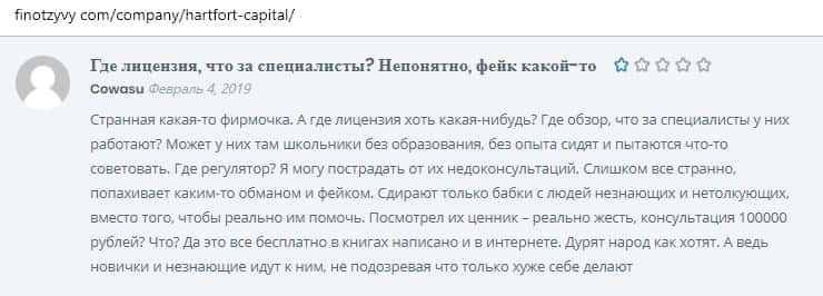 - Слабые консультации в мошеннической конторе Харт Форт Капитал