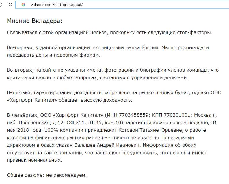 - Мнение авторитетного ресурса о конторе HartFortCapital