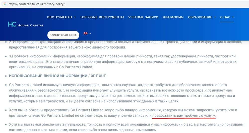 Что у мошенников Хаус Капитал с конфиденциальностью?