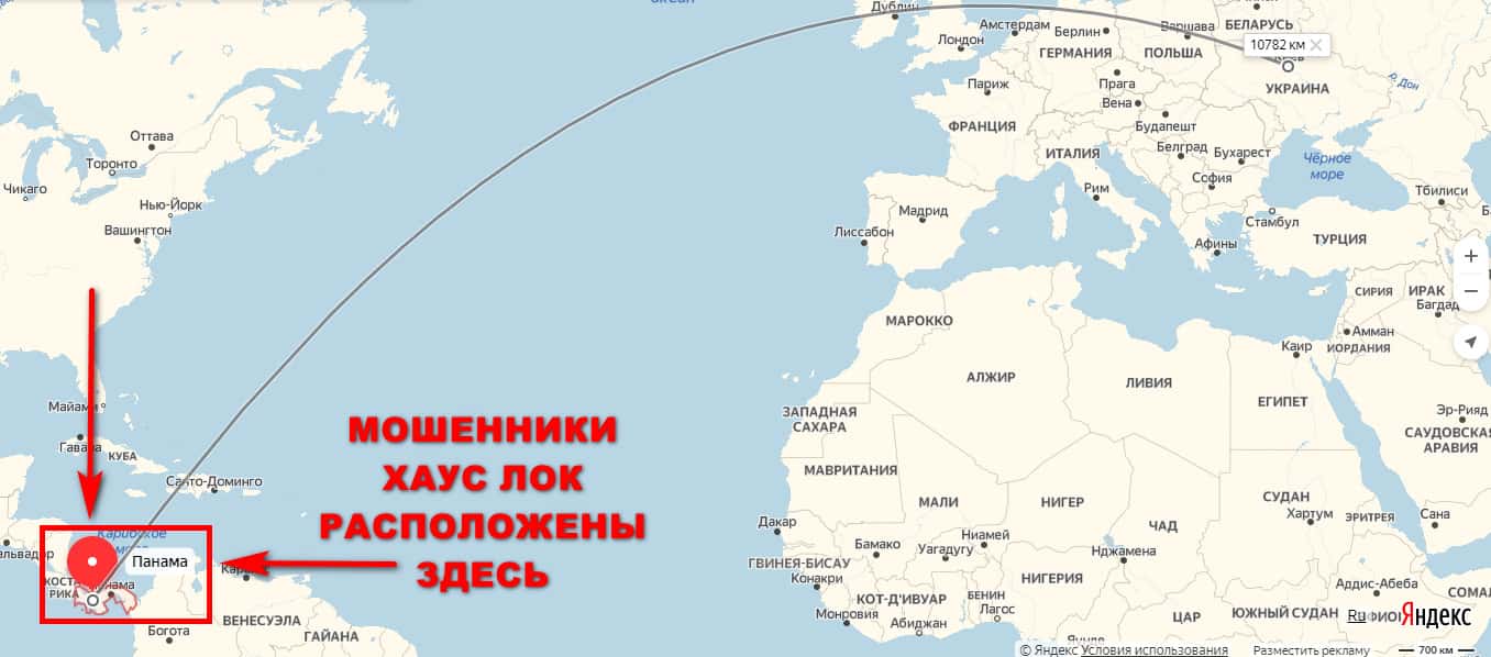 Для того, чтобы не нести ответственность перед клиентами и можно было бы вывести деньги без проблем, контора Хаус Лок определила свое местоположение в оффшоре Панамы. Таким образом, ворью можно быть спокойным за свою безопасность. Если хотите с ними судиться, то вот адрес: Calle 57 Este, Panamá, Panama.