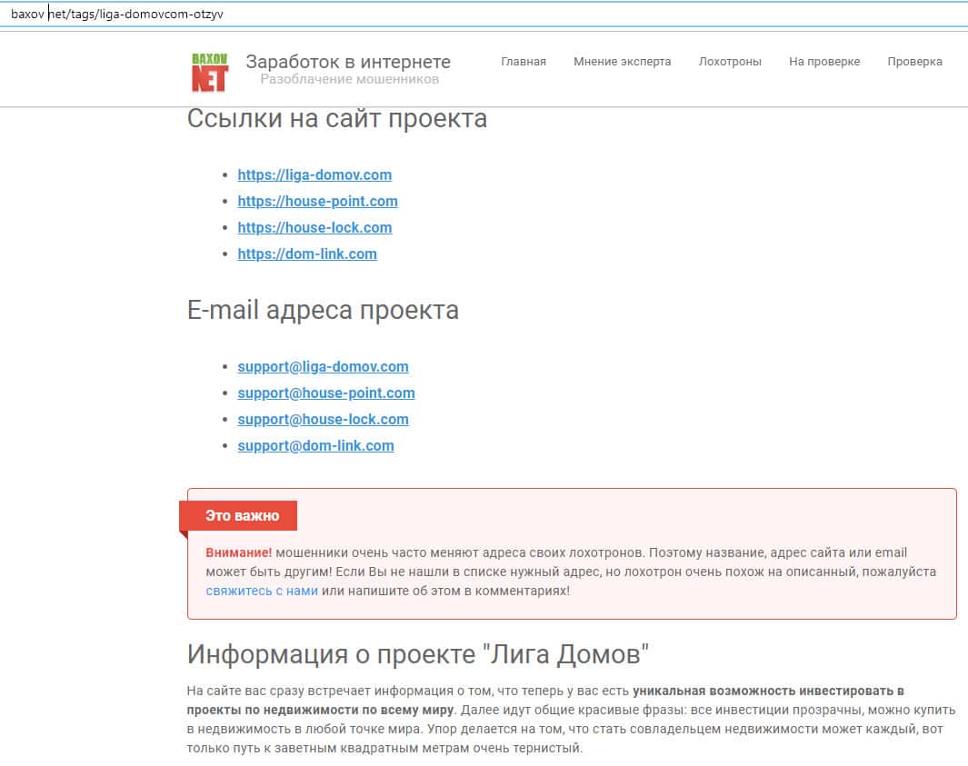 liga-domov com - соскамленный ресурс хайпа Лига Домов