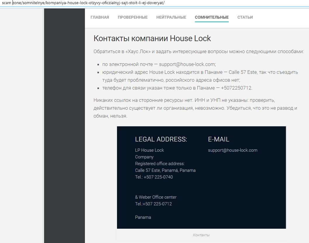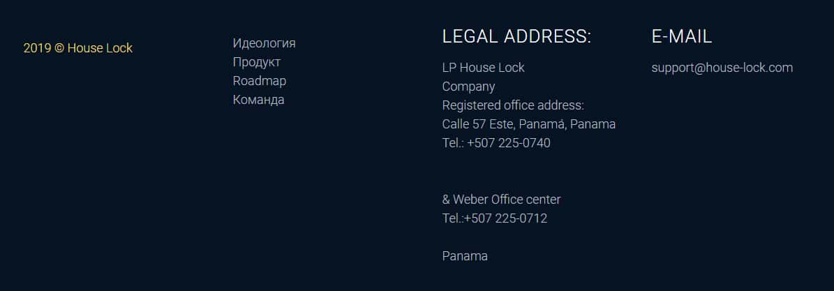 Для связи с собой, шулерский хайп HouseLock оставил некоторые контактные данные, которые используются в процессе общения с представителями компании. Но не стоит наивно всему этому верить, так как судиться особо с ними не получится из-за месторасположения в оффшоре Панамы. И все же оставим некоторые контакты ниже: