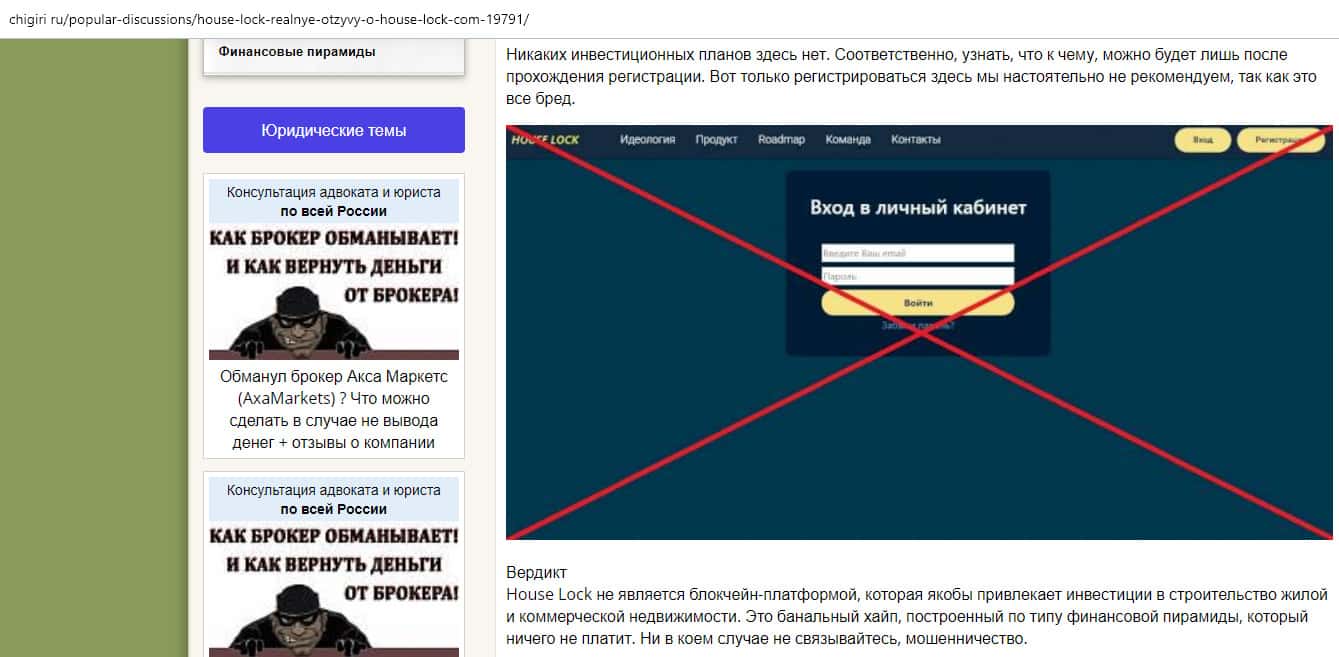 В данной статье описывается вся деятельность мошеннической конторы Хаус Лок, которая обворовала не малое количество людей. Аферисты используют историю про инвестиции в недвижимость, которые основаны якобы на блокчейн-платформе. На самом деле это обычный хайп, где вы можете потерять свои вложения.