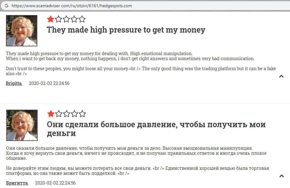 - Противозаконная организация HedgeSpots оказывает большое давление на своих трейдеров