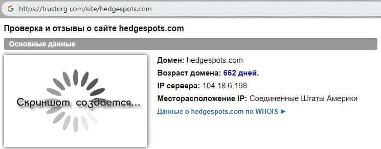 trustorg com - сайт-сервис по проверке на честность домена противозаконной шараги HedgeSpots