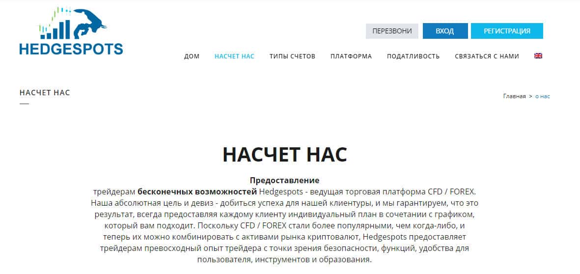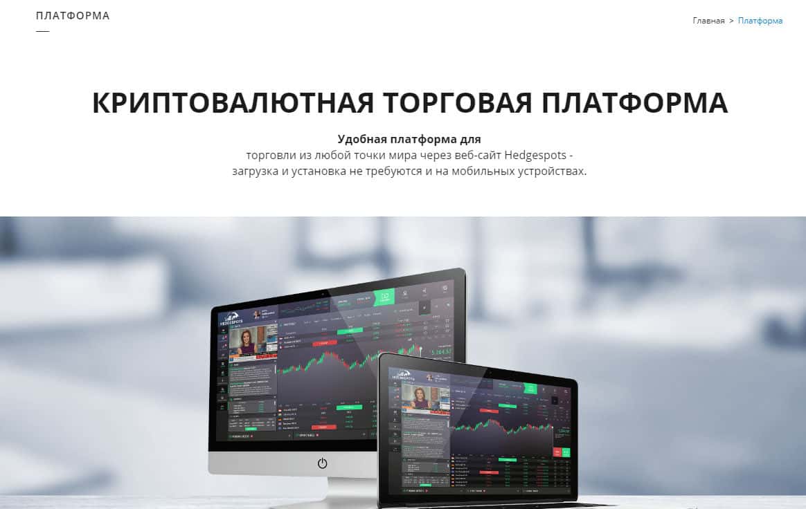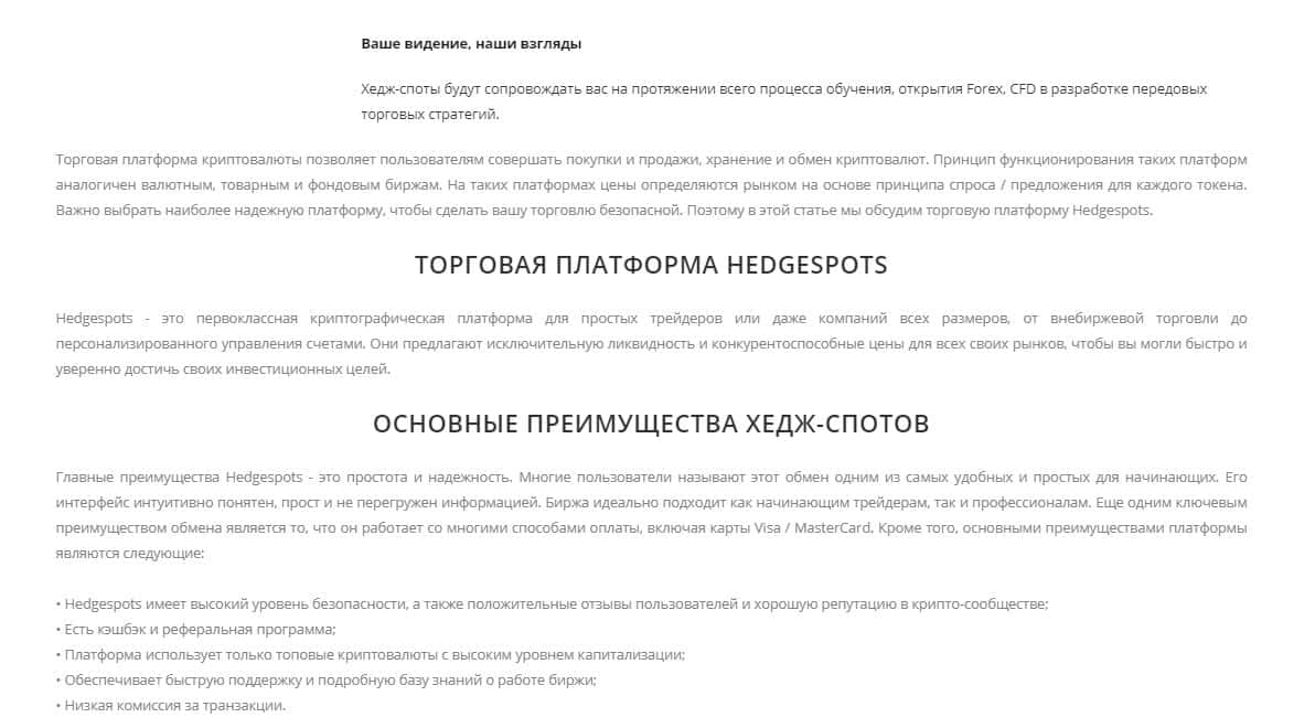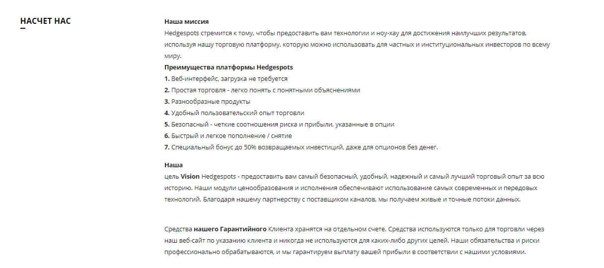 - Рассказы мошеннической крипто-кухни HedgeSpots об их платформе на официальном сайте