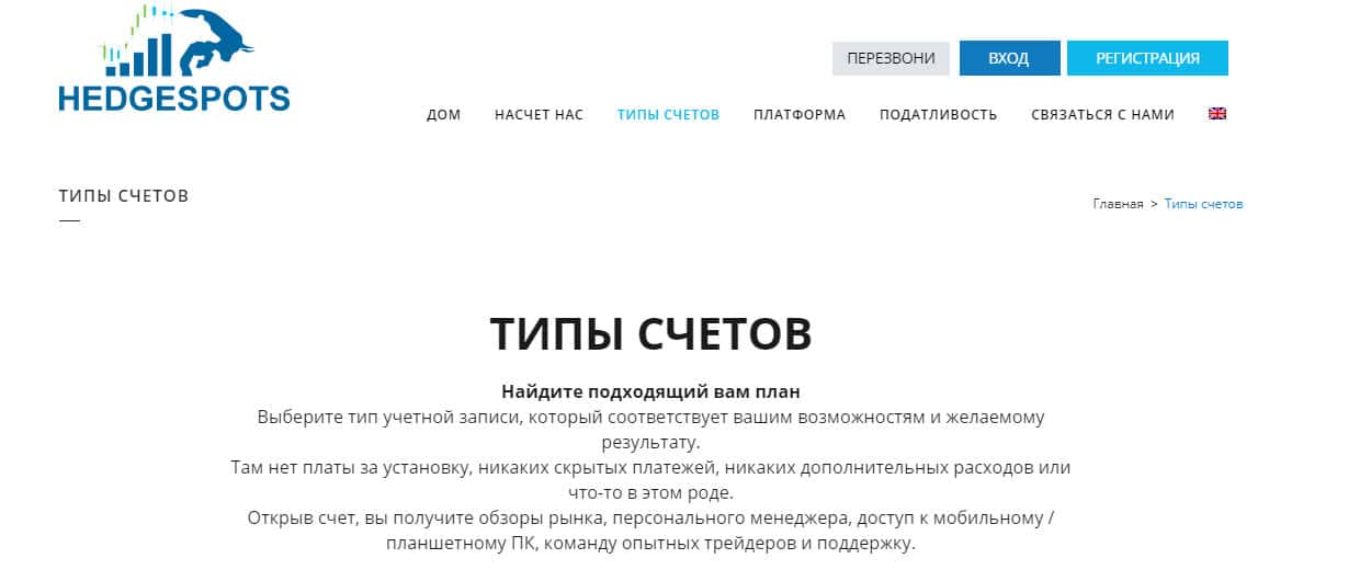 - Мошенническая компания Хейдж Спотс рассказывает о типах счетов на своём сайте