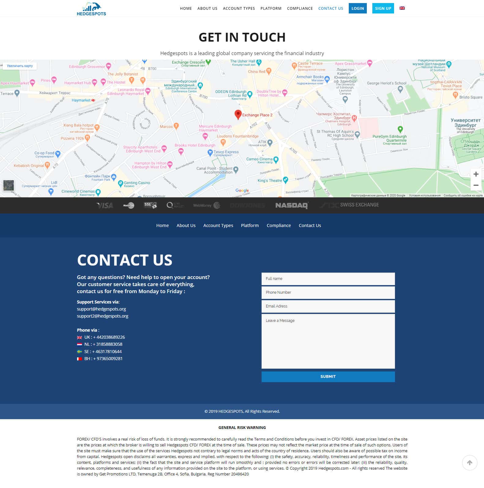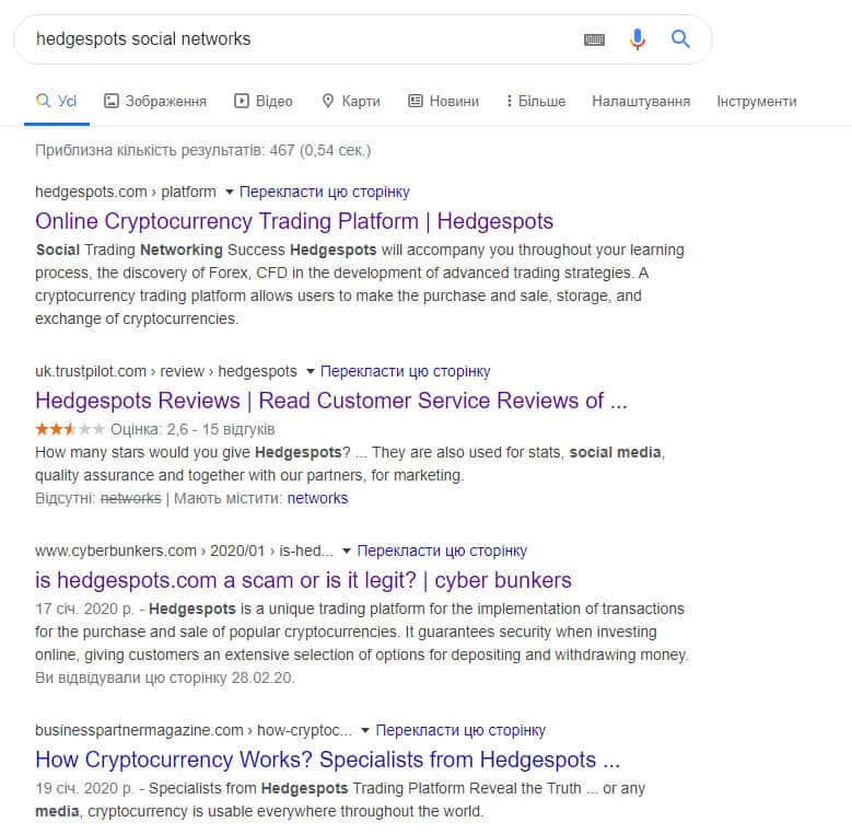 Как можно заметить, данная шарашкина контора под названием Хейдж Спотс, на первый взгляд, не заводила страниц в социальных сетях, что крайне странно. Ведь конторы такого типа заводят подобное для привлечения аудитории и будущих трейдеров. Не отрицается тот факт, что мошенническая противозаконная организация просто на просто шифруется в сети.