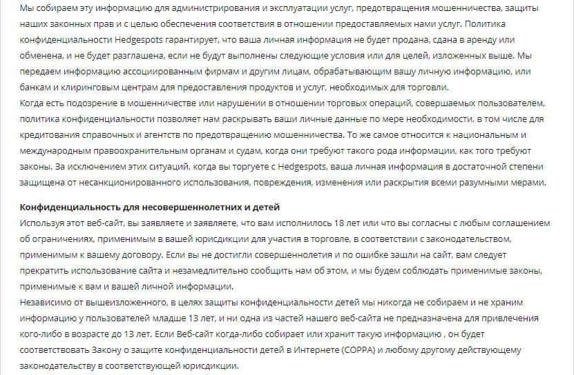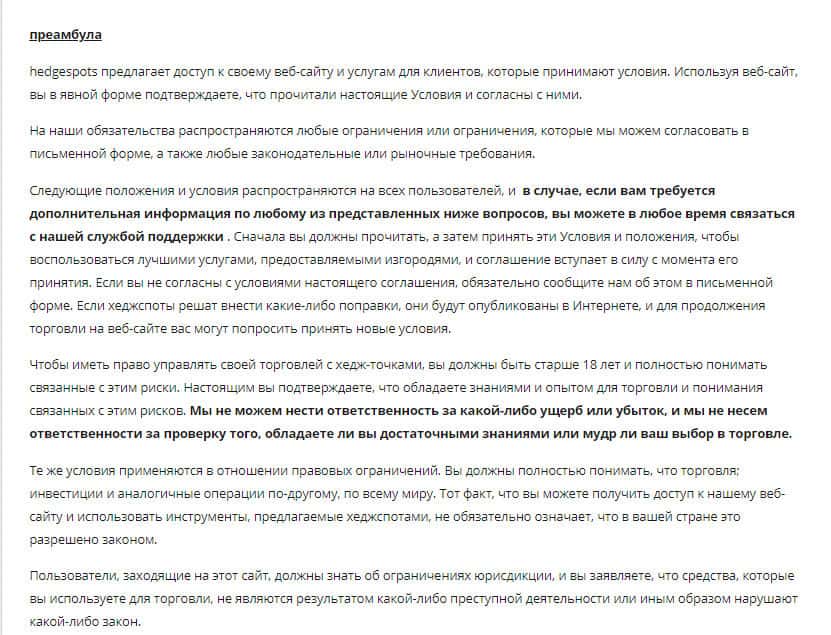 - Разбор данных по пользовательскому соглашению у мошенников HedgeSpots