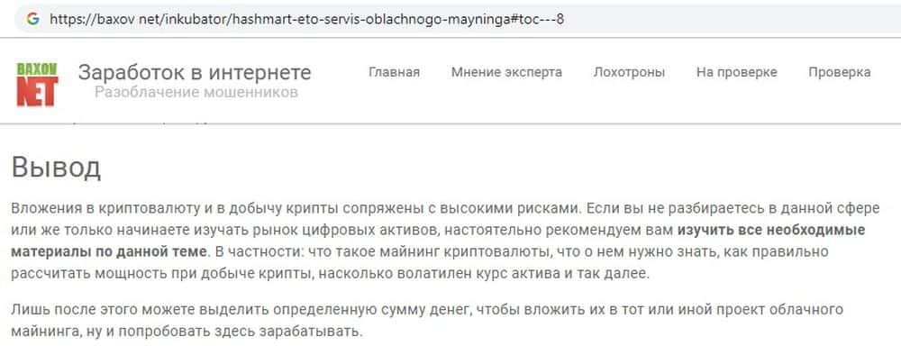 Уровень доверия к лохотрону HashMart в сети очень низкий. Возможно, это связано с тем, что тема битка исчерпала себя, и платформы облачного майнинга одна за другой сворачиваются, унося деньги инвесторов в неизвестном направлении. Сайт baxov net отмечает, что доверять платформе с оффшорной регистрацией рискованно.