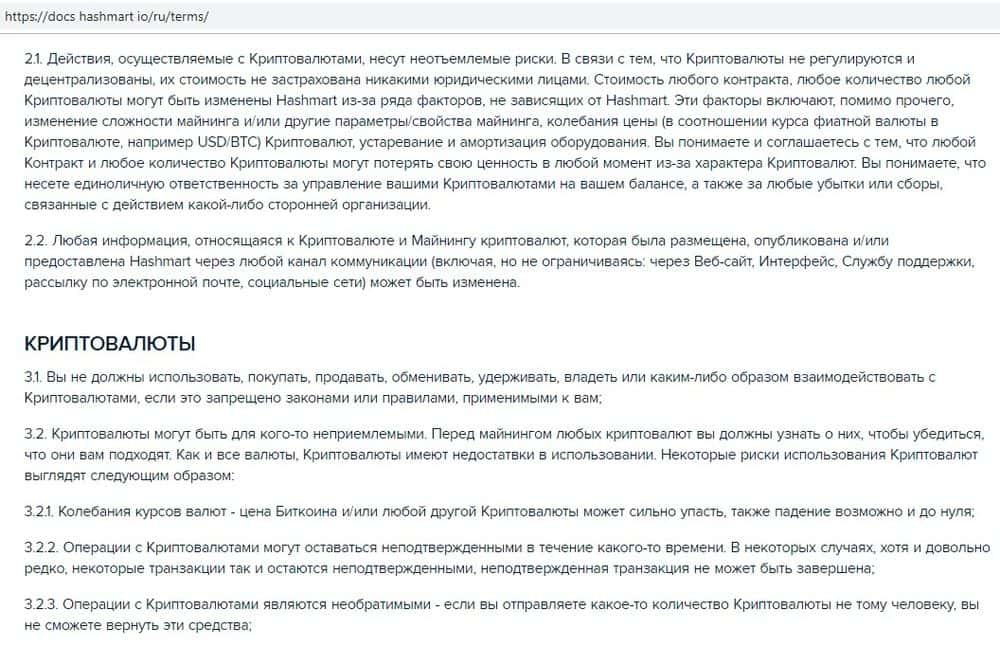 Лохоторонщики HashMart не забыли разместить на своем ресурсе клиентское соглашение и условия пользования. Они запрещают пользоваться услугами облачного майнинга со скрытым IP-адресом. Кидалы предупреждают, что транзакции необратимы, в некоторых случаях операции могут не подтверждаться или приводить к потере средств.