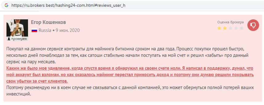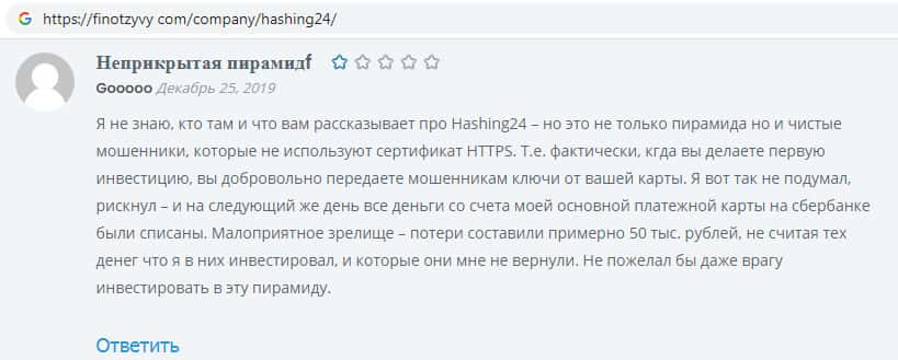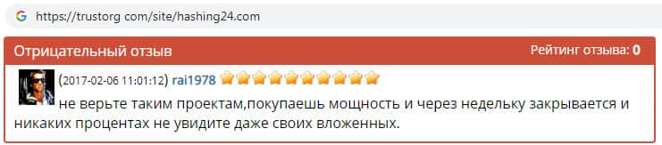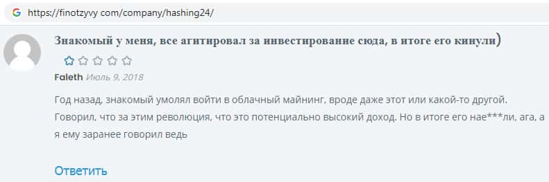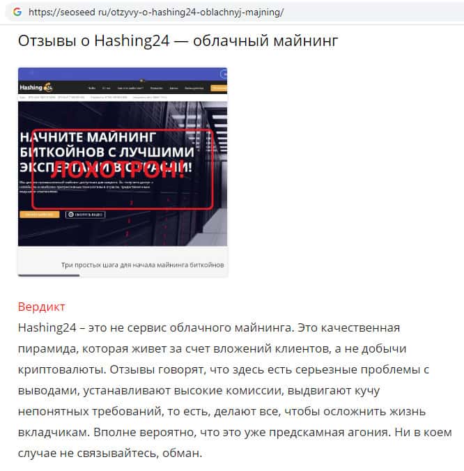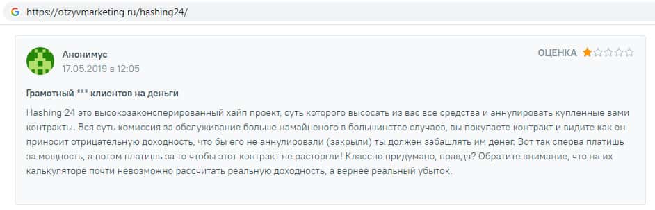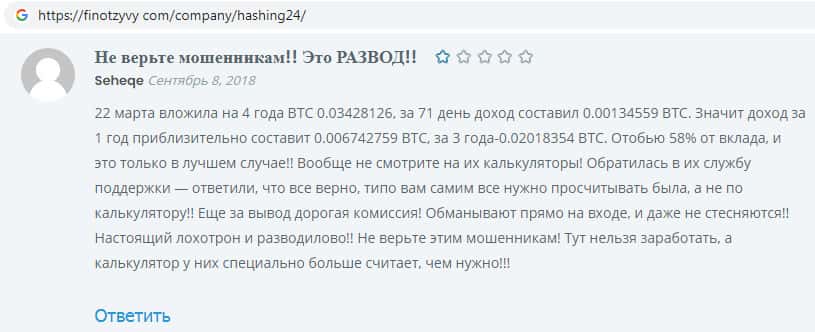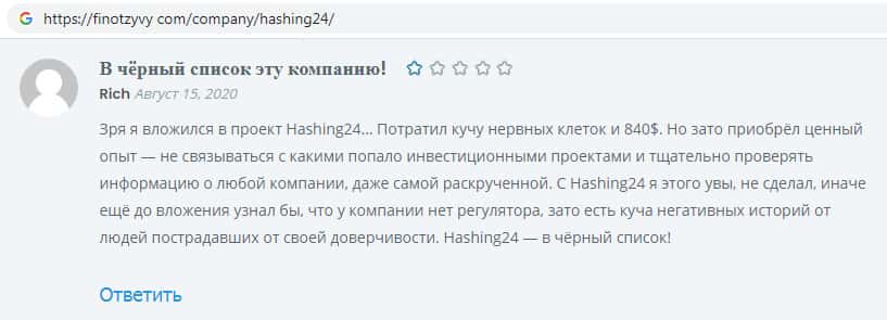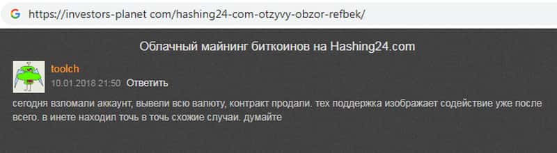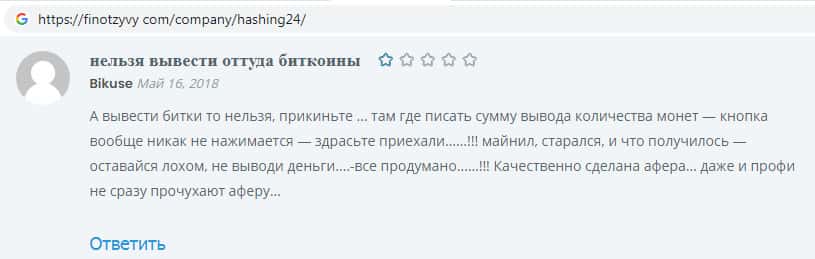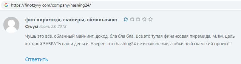 Отзывы о жуликах Хэшинг 24, ныне присутствующие в сети интернет