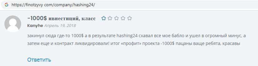 - Отзывы о жуликах Хэшинг 24, ныне присутствующие в сети интернет