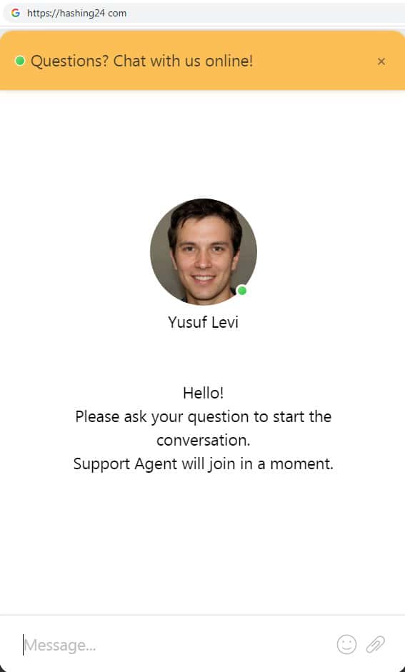 Также жулики Hashing24 предоставили в качестве обратной связи онлайн-чат, при помощи которого ведут сбор данных о клиенте, фиксируя все данные на сайте.