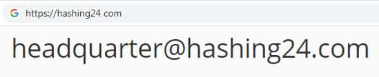 Аферисты Хэшинг 24 на своем официальном интернет-ресурсе указывают адрес электронной почты, а именно: