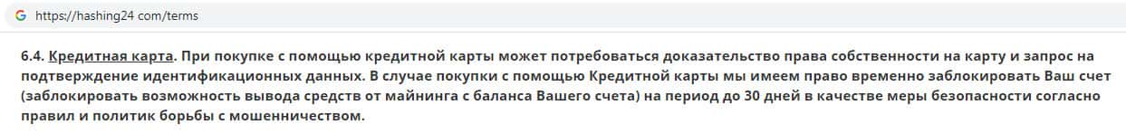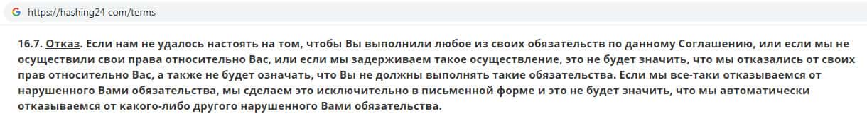 Скам-контора Хэшинг 24 также может прекратить обслуживание клиента в любое время без предварительного уведомления и без особых на то причин.