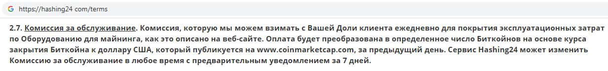 - Клиентское соглашение на сайте мошеннической организации Hashing24
