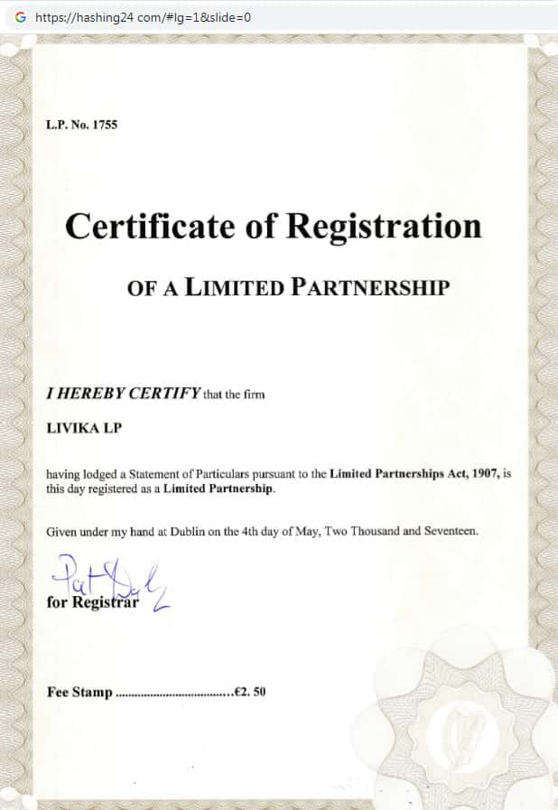 Юридическое лицо LIVIKA LP владеет мошенническим сервисом hashing24 com, главная цель которого, отъем денег у доверчивой части онлайн-сообщества.