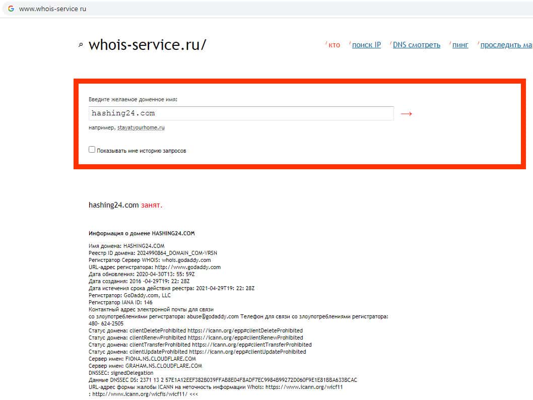 - Данные о владельце домена Хэшинг 24 отсутствуют