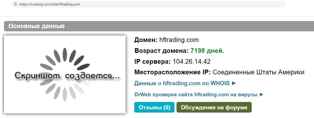 Информация о настоящем возрасте компании лохотронщиков HFTrading
