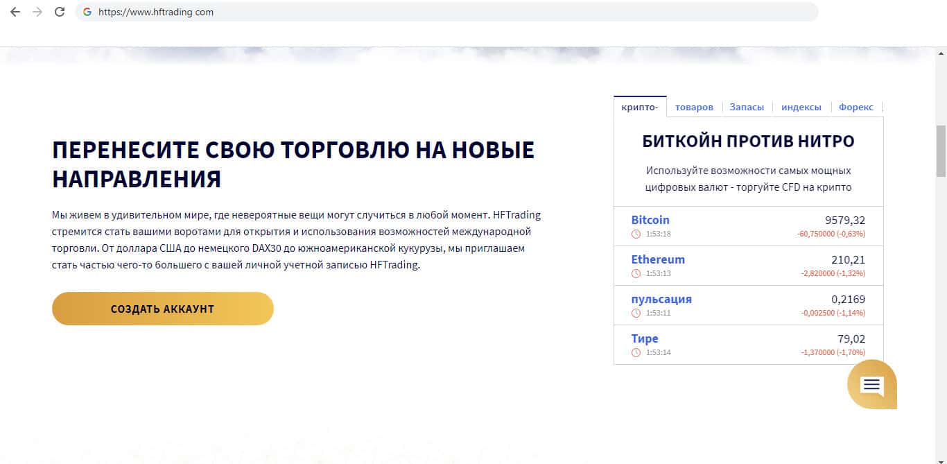 hftrading com - главный интернет ресурс компании разводил HFTrading
