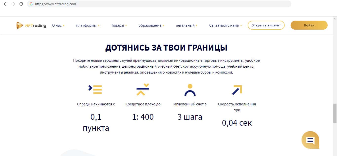 Не забыл лохотрон HFTrading указать пользователям на свои якобы преимущества. На сайте указанно, что компания предлагает пользователям учебный счёт, кучу инструментов, обучение, оповещение о новостях и круглосуточную помощь. Всего этого у компании нет, но они очень хорошо об этом говорят.