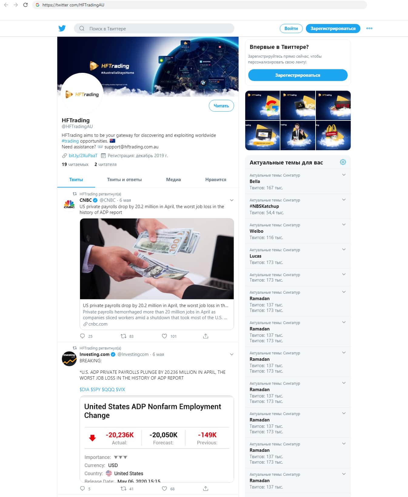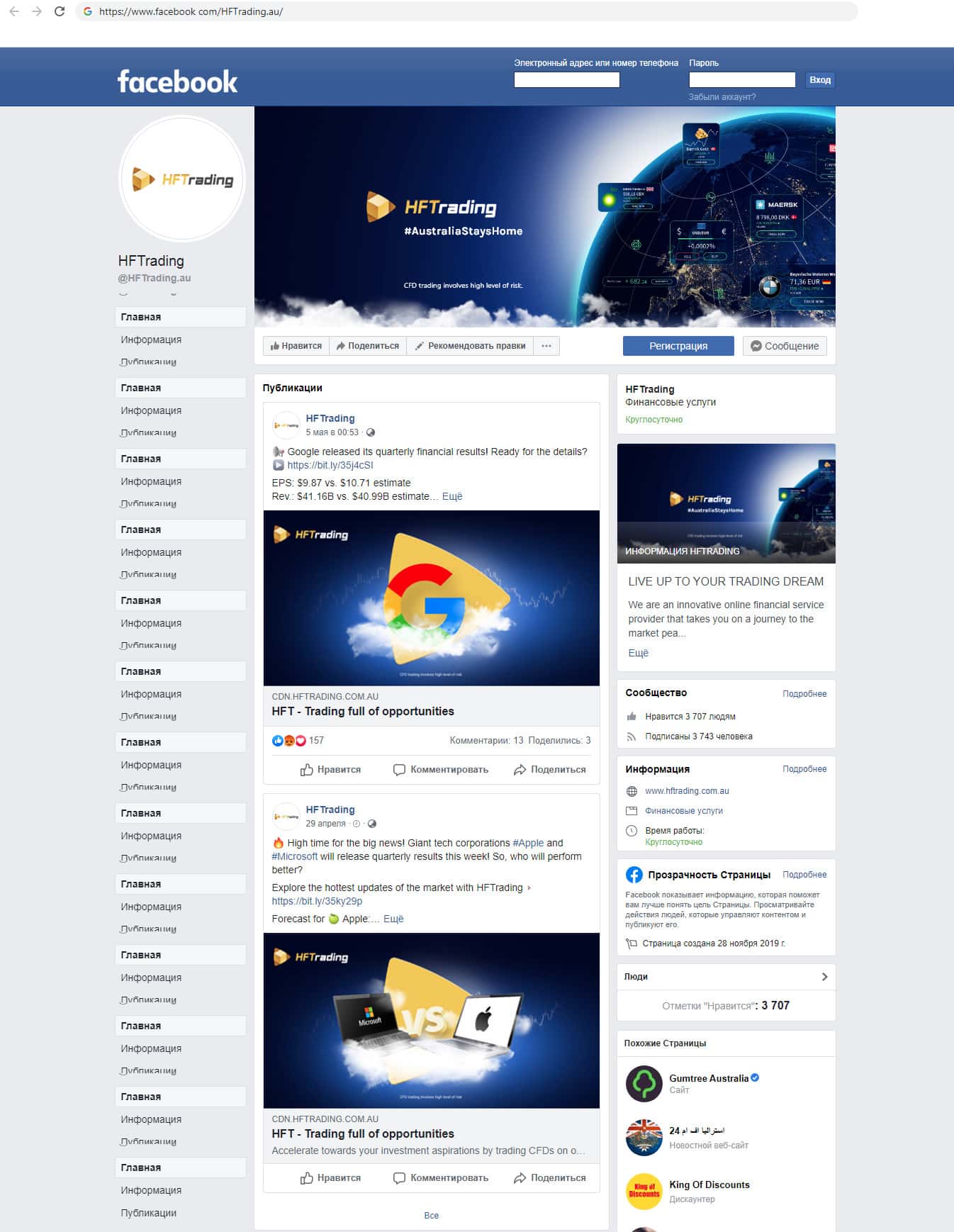 - Информация о сотрудничестве компании кидал HFTrading с социальными сетями