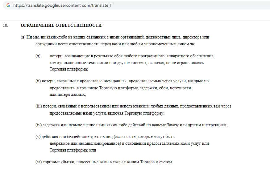 Мы предоставляем перевод отказа от ответственности компании разводил ХФ Трейдинг на Русский язык.