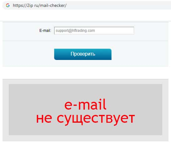 Так же мы проверили адрес электронной почты компании жуликов ХФ Трейдинг. Он так же не является действительным. То есть клиенты компании не могут связаться с фирмой, только сотрудники компании могут связаться с клиентами, что бы вымогать деньги, как только клиент остаётся без средств, фирма тут же прекращает общение с ним.
