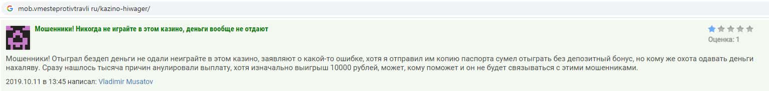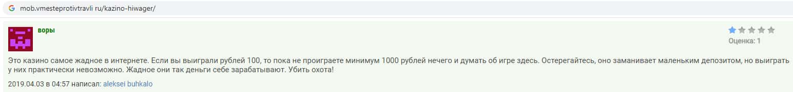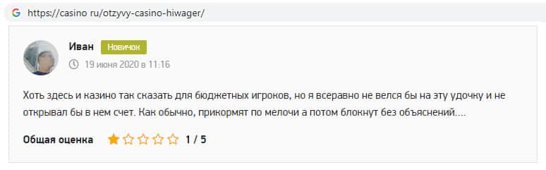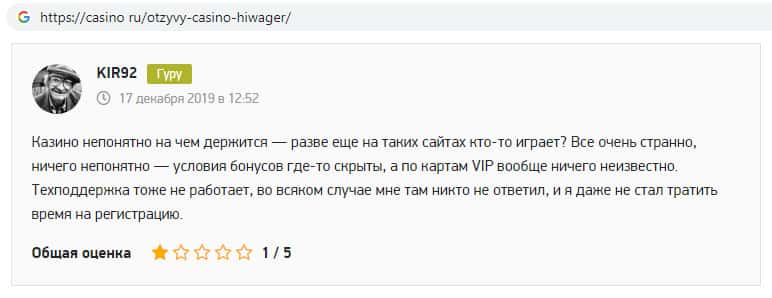 Отзывы о конторе Хивагер Казино, ныне присутствующие в сети-интернет