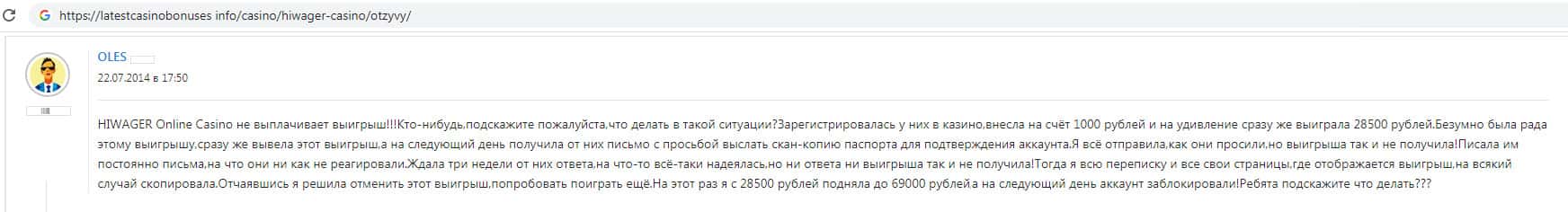 Hiwager Casino - обзоры данных аферистов на иных интернет-порталах