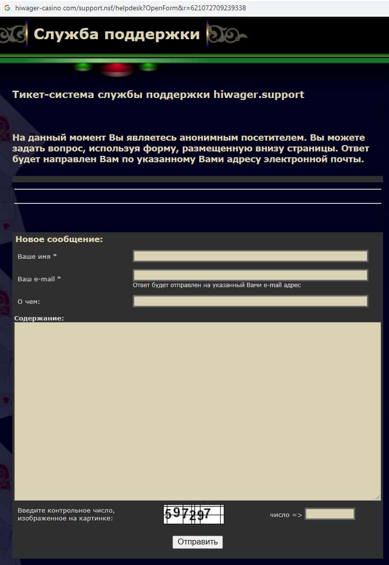 - Техническая поддержка сайта Hiwager Casino оставляет желать лучшего
