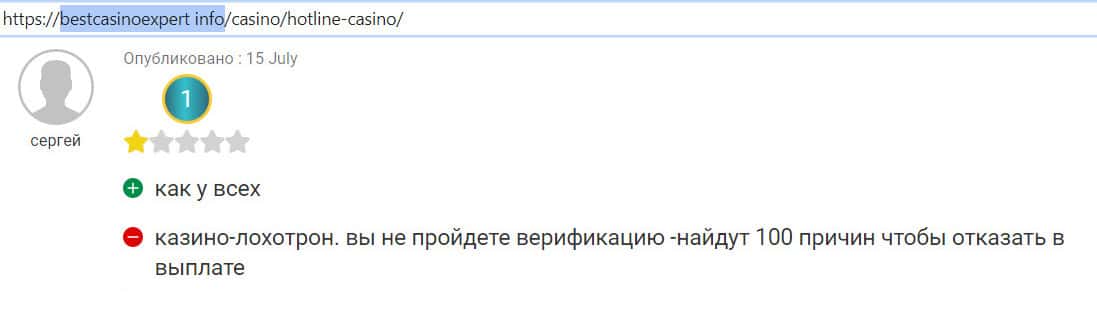 Автор последующего негативного отзыва про онлайн-казино HotLineCasino пишет о том, что данный интернет-сервис все сделает для того, чтобы игрок не получил денежных средств.