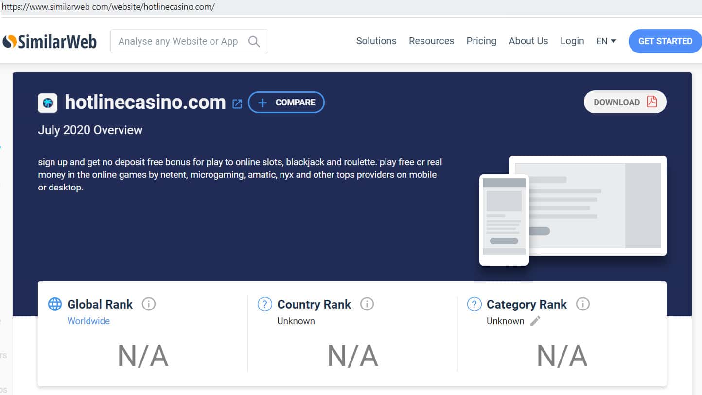 Сайт СимиларВеб Ком не может определить источники трафика казино-фальшивки ХотЛайнКазино, и это не удивительно, потому как имеем дело с обычным интрнет-лохотроном.