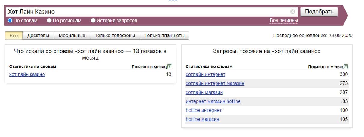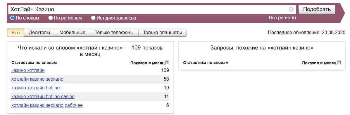 Популярность ХотЛайн Казино среди пользователей поисковика Яндекс