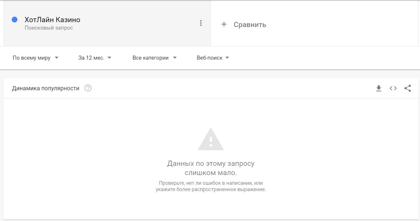 Данных по запросу HotLineCasino слишком мало, поэтому сервису trends google ru не удается отобразить реальную статистику.