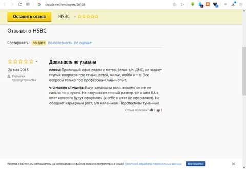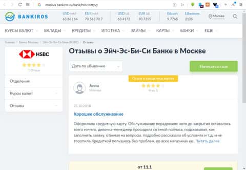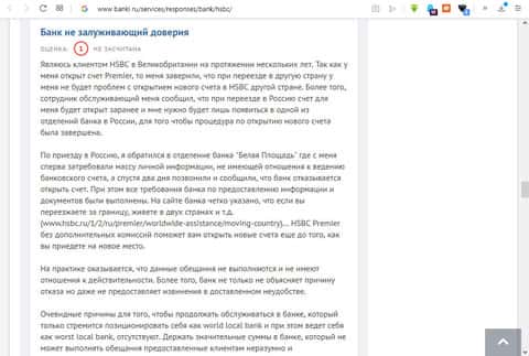 Проплаченный отзыв о банке HSBC на сайте bankiros ruПодведение итогов о работе HSBC клиентом