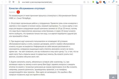HSBC заставила человека много раз ходить к ним для получения картыПроплаченные фейковые отзывы о HSBC на сайте bankiros ru