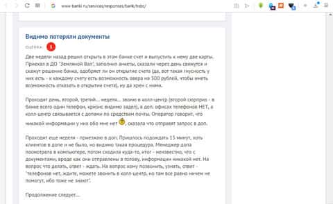 На том же портале(смотрите в прошлом разделе), есть отзыв клиента, в котором рассказывается об истории автора, когда ему надо было быстро открыть счет, и купившись на обещания, исходящие из уст сотрудников компании, человек потратил много времени, не получил банковского счета и ещё отдал все свои данные этим жуликам, которые то не отвечают на звонки, то откладывают срок работы.