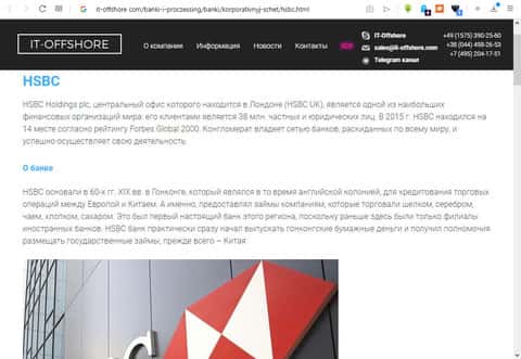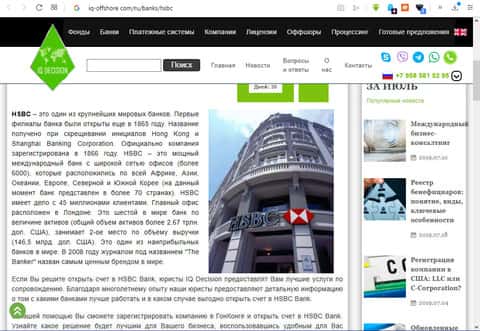 На сайте-портале информационного характера it-offshore com присутствует статья, посвященная истории создания компании финансового направления HSBC на территории Соединенного Королевства. А после расширения сфер влияния по всей Великобритании, стала вывозить капитал за границу, тем самым себе зарабатывать, обворовывая людей на всей земле.