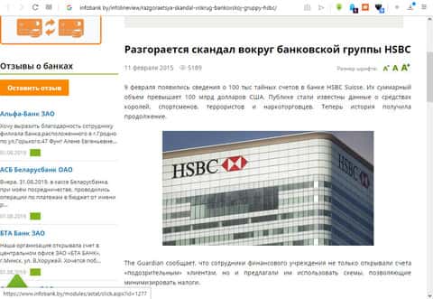 Скандал с компанией HSBC в 2015 годуОбзор на главную страницу сервиса HSBC