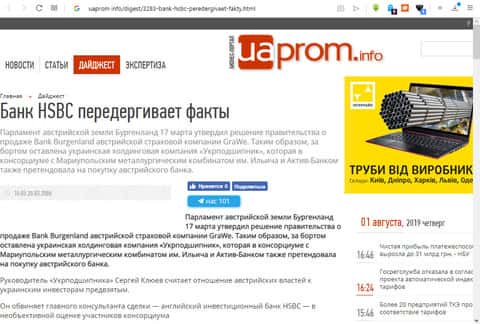 Начиная с 2006 года на Украине стала расширять своё влияние компания финансового направления, предоставляемая банковские услуги, HSBC. Последняя начала скупать множество мелких предпринимательств, которые занимались финансовой деятельностью, а также мелкие банки, не получившие широкого распространения. Более подробно, этот процесс завоевания рынка услуг описан на сайте uaprom info.