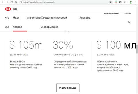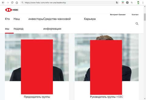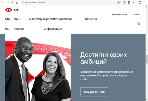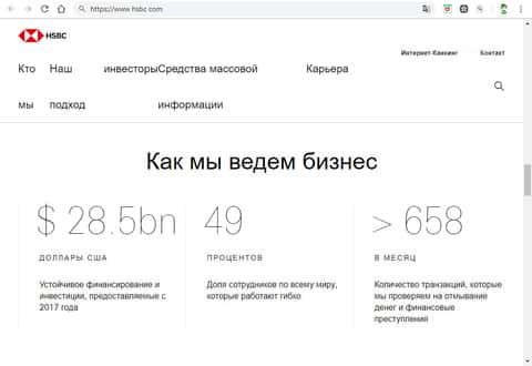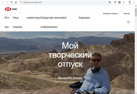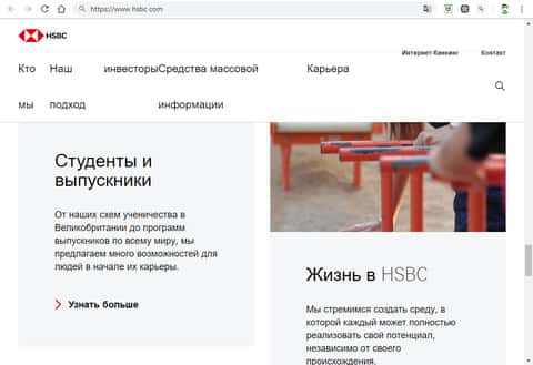 Главная страница афферистов HSBCИнформационный блок на главной странице сайта организации HSBC