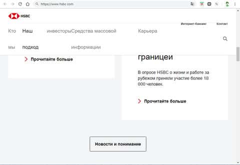 Новостные статьи в отдельном блоке на сайте банка HSBC"Как мы ведём бизнес" или как заманить человека и сделать его клиентом HSBC