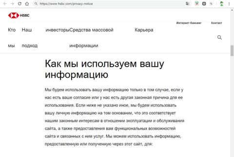 Политика конфиденциальности жуликов с HSBCУсловия работы с мошеннической компанией HSBC