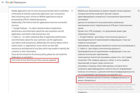 Завершается же политика конфиденциальности у жулья ХТБ довольно стандартно и ожидаемо, а именно водой о различных дополнительных условиях лохотрона XTB, а так же условием о том, что мошенники ХТБ могут в любой момент по своему личному усмотрению изменять данную политику конфиденциальности.